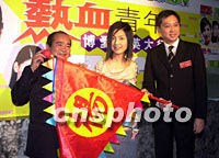 組圖:楊千樺出席"熱血青年博愛耆英大行動(dòng)"記者會(huì) 2001年09月05日 19:48 ![]() 歌星楊千樺5日在香港出席"熱血青年博愛耆英大行動(dòng)"記者會(huì),博愛醫(yī)院董事局主席曾元鴻(左)授旗予"楊家將"千樺委任為義工統(tǒng)帥,楊千樺將于23日與兩位歌星李彩樺、方力申聯(lián)同義工到安老院探訪老人家。中新社圖 鄧慶樂 攝 ![]() 歌星楊千樺5日在香港出席「熱血青年博愛耆英大行動(dòng)」記者會(huì),楊千樺展示義工申請(qǐng)表呼吁大家加入義工行列,熱心公益、服務(wù)社群。中新社圖 鄧慶樂 攝