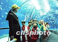 圖:上海海洋水族館成為“科普教育基地” 2002年03月30日 16:04 ![]() 上海海洋水族館近日被定為“浦東新區(qū)科普基地”,開(kāi)始為人們提供科學(xué)知識(shí)和海洋環(huán)保等方面的教育。圖為小朋友們?cè)趨⒂^上海海洋水族館。中新社圖 湯彥俊 攝