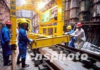 圖:廣州地鐵二號線首期開通段今年底建成通車 2002年04月01日 10:37 ![]() 廣州地鐵二號線首期開通段的三元里至?xí)愿鄱尉耪,將于今年底正式建成開通。圖為地鐵施工人員將排軌吊到幾層樓深的隧道下。中新社圖 謝展程 攝