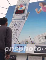 圖:王府井街頭豎起新型手機(jī)廣告時(shí)間牌 2002年04月21日 17:48 ![]() 近日,在北京王府井的街頭立起了一塊用手機(jī)廣告裝飾的時(shí)間牌,它可以顯示時(shí)間和溫度,給行人帶來方便。手機(jī)廠商為了搶占手機(jī)市場(chǎng)可謂煞費(fèi)苦心。中新社記者 杜洋 攝