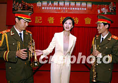 ![]() 香港亞視當(dāng)紅主持人朱慧珊,7月4日出席中國(guó)人民解放軍軍樂(lè)團(tuán)記者會(huì),她將主持7月6日晚在香港紅磡體育館舉行的中國(guó)人民解放軍軍樂(lè)團(tuán)演出晚會(huì)。任晨鳴 攝
