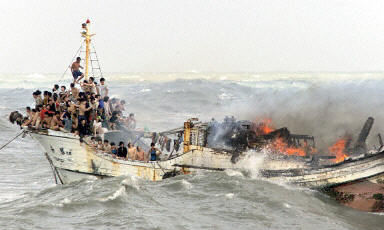 大陸漁工船失火:133人獲救 2人重傷 1人失蹤 2002年07月09日 17:45 ![]() 搭載百余名祖國大陸漁工的臺灣籍海上船屋“元?jiǎng)佟倍柦裉焐衔缭诟咝弁夂JЩ稹?法新圖) 中新網(wǎng)香港7月9日消息:臺北訊,作為祖國大陸漁工“海上旅館”用的臺灣屏東籍“元?jiǎng)俣枴睗O工船,今天在高雄海域發(fā)生火災(zāi)。據(jù)臺灣媒體最新消息,事故中目前共計(jì)救起133名大陸漁工,其中11人受傷送醫(yī),另有一人失蹤。 據(jù)“中央社”報(bào)道,“元?jiǎng)俣枴睗O工船今天上午在高雄大林蒲外海發(fā)生火警,造成祖國大陸漁工兩人重傷、九人輕傷送醫(yī)。 受傷的11名大陸漁工中,有10人被送往高雄市的小港醫(yī)院急救。其各自的傷勢情況如下—— 蕭輝,25歲,右手挫傷;陳如君,27歲,左手撕裂傷及頸部扭傷;陳良紅,28歲,頭部及右臉頰外傷;沈繼兵,32歲,頭部外傷及背部多處挫傷;顧海兵,23歲,右手臂擦傷及左小腿挫傷;張永,27歲,頭部外傷、多處撕裂傷、左手臂及右手肘挫傷;唐宗林,20歲,嗆傷及顏面灼傷;劉國保,29歲,嗆傷及胸部挫傷;師福君,21歲,嗆傷;李建國,26歲,臉部燒燙傷合并嗆傷。 這10名受傷漁工中,除師福君及李建國重傷外,其余都屬輕傷。其中師福君因在被救過程中落海,吸入大量海水,造成肺部吸入性嗆傷,經(jīng)急救后,傷勢穩(wěn)定,仍住院觀察;而李建國傷勢最為嚴(yán)重,但暫時(shí)亦無生命危險(xiǎn)。 另一名祖國大陸漁工任忠均,22歲,身上多處擦傷,經(jīng)急救已無大礙。 此外,一名失蹤者的身份目前待查。 原停泊在高雄與屏東間外海的“元?jiǎng)佟倍柡I洗,今天上午約8:30時(shí)在高雄南星計(jì)劃填海造陸區(qū)外海一浬處突然起火。由于風(fēng)浪太大,救援船只無法靠近。臺灣方面遂派出直升機(jī),以鋼纜吊掛、接駁方式,將船屋上的大陸漁工救至岸上。據(jù)悉,救援行動(dòng)歷經(jīng)近5個(gè)小時(shí)。 “元?jiǎng)佟碧柺桥_灣屏東縣籍的祖國大陸漁工海上船屋,停泊高雄與屏東間外海,因臺灣方面不允許祖國大陸漁工上岸,該船屋被專門用于出海作業(yè)漁船雇用的大陸漁工居住。 相關(guān)報(bào)道:"突然巨浪打來…"大陸獲救漁工回憶海上大火驚魂 相關(guān)報(bào)道:臺灣對祖國大陸出口趨增 上半年同比增長逾七成 相關(guān)報(bào)道:大陸漁工船起火132人獲救 落水失蹤人數(shù)說法不一 相關(guān)報(bào)道:圖文:大陸漁工船屋被燒毀 128名漁工全部獲救 相關(guān)報(bào)道:七位大陸漁工在高雄急救 有人跳海 船屋沉沒一半 相關(guān)報(bào)道:臺灣船屋失火 救起60余大陸漁工 尚有30多待救 相關(guān)報(bào)道:搭載大陸漁工的船只在臺灣海峽失火 100多人待救 相關(guān)報(bào)道:一艘載有100多人的大陸漁船在臺灣海峽著火