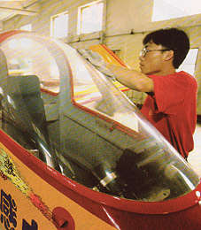《新聞周刊》:中國(guó)天空將開放 私人飛機(jī)欲起飛 2002年08月01日 11:42 ![]() 不能起飛的飛機(jī):科源飛機(jī)公司的市場(chǎng)人員在擦試飛機(jī)上的灰塵。由于空管限制每次升空均需復(fù)雜程序。