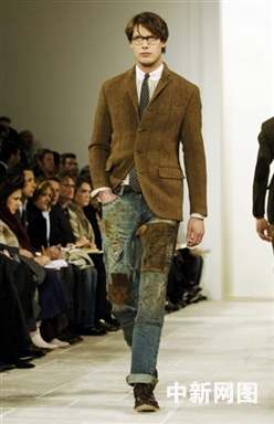 2006年2月6日,模特在紐約時(shí)裝周上展示Ralph Lauren男款秋裝。這是30年里,Lauren在紐約的第一次男裝秀。
