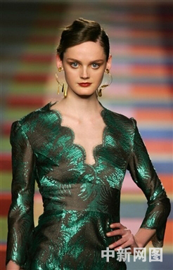 2006年2月14日,模特在馬德里時裝周上秀西班牙設(shè)計師的秋冬作品系列,展示了秋冬季時裝的最新潮流趨勢。