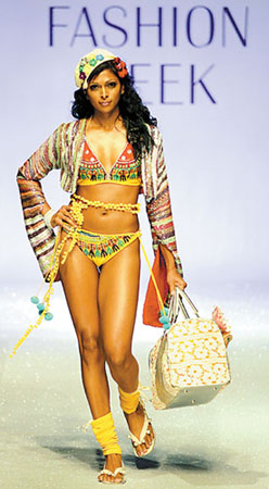 今年春夏,設(shè)計(jì)師受到了非洲、印度民族服裝特色的影響,紛紛推出了充滿熱帶叢林風(fēng)情的泳裝。