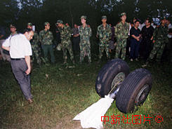 武警封鎖的墜機(jī)現(xiàn)場,和墜機(jī)的起落架。東方 攝