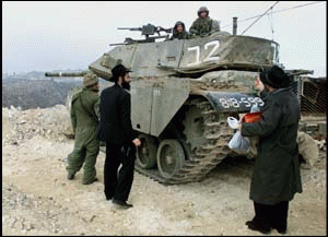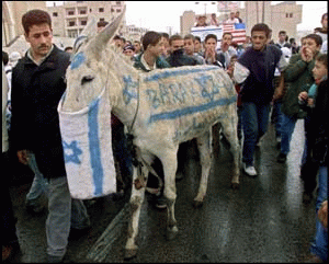 圖文:以色列軍隊包圍巴勒斯坦村莊 2000年10月24日 08:55 ![]() 巴勒斯坦示威者在一頭驢子身上用油漆寫上以色列總理巴拉克的名字,并向該頭驢子投擲石塊泄憤。 ![]() 以軍包圍巴勒斯坦自治區(qū)內(nèi)的比特·杰拉村,防止巴勒斯坦人進入村落,向猶太人定居點發(fā)動攻擊。 中新網(wǎng)北京10月24日消息:綜合外電報道,巴以局勢持續(xù)緊張,以色列國防部官員宣布,以軍已包圍了位于巴勒斯坦自治區(qū)城市伯利恒西北的村莊比特·杰拉,以防止巴勒斯坦激進分子進入鄰近的猶太定居點發(fā)動襲擊。同時,以軍也關(guān)閉了加沙國際機場,以切斷巴勒斯坦人對外聯(lián)系。 以色列國防軍總參謀長穆法茲說,以軍已包圍比特.杰拉村,防止巴勒斯坦人進入該村莊,向鄰近猶太定居點吉魯?shù)貐^(qū)發(fā)動攻擊。 他并向巴勒斯坦人發(fā)出警告,聲稱若巴勒斯坦人再攻擊位于耶路撒冷南郊的吉魯?shù)貐^(qū),以軍將以一切手段進行還擊。 據(jù)悉,周日一批不明身份的巴勒斯坦人在比特·杰拉村開槍襲擊,12幢以色列住宅遇襲,以軍隨即出動武裝直升機,向該村發(fā)射導彈;以軍坦克也向該村開火,以軍的攻擊行動造成10名巴勒斯坦人中彈受傷。 吉魯?shù)貐^(qū)是以色列在1967年中東戰(zhàn)爭后占領(lǐng)的,隨后被納入耶路撒冷市政區(qū)。該地自上月末巴以流血沖突爆發(fā)以來,曾遭到5次攻擊。 巴以沖突目前已進入第4周,但情況仍然非常緊張,至今已造成134人死亡,約4,000人受傷。 |