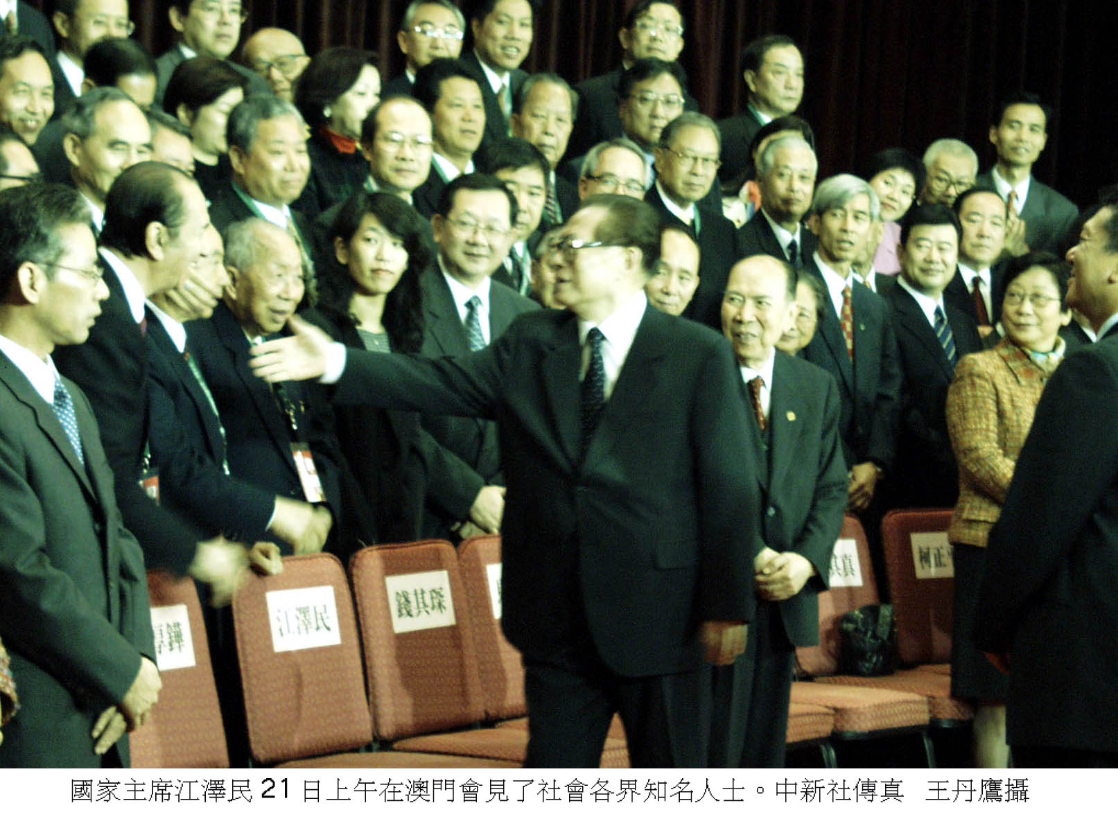 特寫:江澤民主席與澳門各界知名人士談心 2000年12月21日 14:34 ![]() 國家主席江澤民21日上午在澳門會(huì)見了社會(huì)各界知名人士 中新社澳門十二月二十一日電題:特寫:“冬天來了,春天還會(huì)遠(yuǎn)嗎?”──江澤民主席與澳門各界知名人士談心