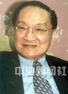著名武俠文學(xué)大師金庸先生,二十六日在京出席四十集電視連續(xù)劇《笑傲江湖》首播式。中新社記者 錢興強 攝