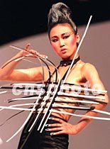 在北京舉辦的第九屆中國國際青年服裝設計師作品大賽上,中國服裝設計師趙曌和呂劍的參賽作品“紛爭與融合”。中新社記者 錢興強 攝