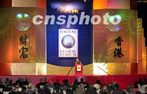 9日晚上在香港舉行的《財富》全球論壇晚宴上,世界各地商人名流匯集,聽取泰國總理塔信介紹泰國經(jīng)濟(jì)的發(fā)展情況。中新社傳真 洪少葵 攝