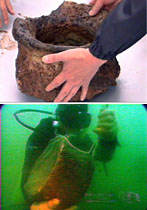 中國(guó)云南撫仙湖水下考古的隊(duì)員們六月三日九時(shí)許,在水下考古現(xiàn)場(chǎng)發(fā)現(xiàn)一個(gè)陶器,并將這個(gè)陶器運(yùn)出水面進(jìn)行研究分析,有專家認(rèn)為這是漢代的“釜”(鍋),是一種生活用具。