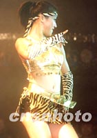 在北京申奧成功之際,2001CCTV-MTV音樂盛典,十五日在北京舉辦歡慶申奧成功,評選歌手現(xiàn)場投票活動。圖為年輕歌手身穿前衛(wèi)時裝載歌載舞盡興表演。中新社記者 錢興強 攝