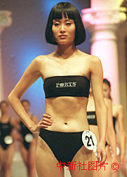 圖:2000新絲路中國模特大賽山西選拔賽泳裝表演 2000年8月5日 10:40 ![]() 2000新絲路中國模特大賽山西選拔賽三日晚在太原市舉行,身穿泳裝的女模特選手趙鑫獲選拔賽亞軍。中新社記者:錢興強攝 |