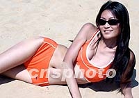 正在青島舉行的戴安娜2001世界精英模特大賽中國預(yù)選賽暨金沙灘模特大賽,十一日在金沙灘景區(qū)拍攝外景。圖為一名身穿泳裝的模特在沙灘上拍照。 中新社記者 錢興強 攝