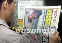 圖:澳門市民關(guān)注美國(guó)被襲事件 2001年09月12日 22:25 ![]() 美國(guó)發(fā)生的恐怖爆炸事件成為澳門各媒體的頭條新聞,圖為一位市民邊等電梯邊閱讀報(bào)紙。中新社圖 宗金柱 攝