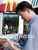 圖文:美國(guó)連環(huán)襲擊事件牽動(dòng)北京輿論民情 2001年09月13日 03:41 ![]() 十三日晨,在北京麥當(dāng)勞餐廳前,前來(lái)用餐的顧客關(guān)注報(bào)紙上報(bào)道美國(guó)遭襲消息。中新社記者 錢(qián)興強(qiáng) 攝