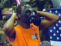 圖:紐約人爭購防毒面具以防生化武器襲擊 2001年09月26日 14:35 ![]() 紐約人日前爭購放毒面具,以免受到恐怖主義可能進行的生化武器的襲擊。圖為一紐約青年正在選購防毒面具。 |