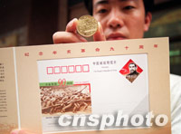 圖文:《辛亥革命九十周年》紀念郵資明信片發(fā)行 2001年10月10日 01:35 ![]() 全國政協(xié)副主席葉選平九日在北京政協(xié)禮堂為“辛亥革命90周年”紀念明信片首發(fā)式揭幕。中新社記者 史利 攝 ![]() 國家郵政局將于十日發(fā)行“辛亥革命90周年”紀念郵資明信片一套及紀念幣一枚。中新社記者 史利 攝
