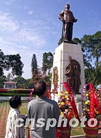 圖:瞻仰偉人孫中山先生銅像 2001年10月11日 18:56 ![]() 廣東各地紛紛舉行辛亥革命九十周年紀念活動,在韶關市中山公園內孫中山先生銅像前,擺滿各界人士敬獻的花籃,一對老年夫婦遠道而來瞻仰歷史偉人孫中山先生銅像。七十多年前,孫中山先生曾兩次親臨韶關,在中山公園所在地督師北伐。中新社圖 馮昶 攝 |