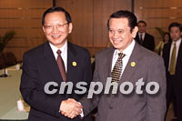 圖文:唐家璇會(huì)見菲律賓外長希望中國人質(zhì)早日獲釋 2001年10月17日 15:15 ![]() 中國外交部長唐家璇十六日在上海國際會(huì)議中心會(huì)見前來參加亞太經(jīng)合組織(APEC)會(huì)議的菲律賓副總統(tǒng)兼外長金戈納。中新社記者 毛建軍 攝
