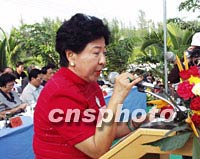 ![]() 紀念宋耀如誕辰140周年活動在海南文昌舉行。海南各界與來自孫中山、宋慶齡紀念地代表及美國、馬來西亞、泰國的海外華人代表、臺灣客人等共二千多人在此紀念宋耀如誕辰140周年,并舉行孫中山、宋耀如塑像揭幕儀式。中新社圖 王辛莉 攝 ![]() 17日下午,孫中山和平教育基金會主席、孫中山孫女孫穗芳出席在海南文昌舉行的紀念宋耀如誕辰一百四十周年活動。圖為孫穗芳在紀念大會上致辭。中新社圖 王辛莉 攝
