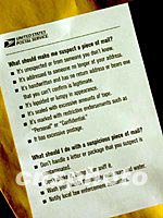 本網(wǎng)特稿:奪命孢子牽動美國“神經(jīng)”(附圖) 2001年11月05日 15:02 ![]() 十余例由信件引起的炭疽病菌感染已造成美國民眾的恐慌心理,美國郵政總局局長波特向全美一億四千七百多個郵件地址發(fā)出明信片,它提醒民眾小心處理郵件。該圖是明信片的背面,它告誡人們哪些郵件值得懷疑;如何處理有懷疑的郵件。中新社 徐德金 攝 ![]() 1998年挪威的特隆郝姆警察博物館館長發(fā)現(xiàn)了一塵封已久的玻璃瓶,標(biāo)簽上寫著“一塊糖中藏有炭疽菌--1917年Otto Karl von Rosen男爵作為間諜嫌疑時從他的行李中發(fā)現(xiàn)的”。英國科學(xué)家與挪威微生物科學(xué)家檢測證實,它是恐怖的B型炭疽。顧建文攝