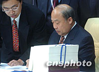 圖文:中國(guó)代表團(tuán)向世貿(mào)組織秘書(shū)處遞交授權(quán)書(shū) 2001年11月11日 17:02 ![]() 中國(guó)代表團(tuán)團(tuán)長(zhǎng)石廣生于當(dāng)?shù)貢r(shí)間11日晚在多哈簽署中國(guó)入世議定書(shū)。中新社記者 錢(qián)興強(qiáng) 攝