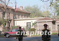 圖文:紐約空難后美國駐華大使館擴(kuò)大警戒范圍 2001年11月13日 15:37 ![]() 北京警方13日在美國駐中國大使館前增加警力并擴(kuò)大了警戒范圍,幾條通往使館門前的道路都設(shè)置了路障,禁止行人和車輛通行。美國美洲航空公司一架空中客車十二日在紐約墜毀,是否與恐怖主義襲擊有關(guān)仍有待進(jìn)一步調(diào)查。中新社圖 武仲林 攝 ![]() 美國墜機(jī)事件后,中國軍方十三日對位于北京建國門外的美國使館區(qū)加強(qiáng)安保工作。“九一一”后一直實行戒嚴(yán)的美使館區(qū)內(nèi)秩序安定。中新社圖 劉殊瑾 攝