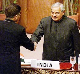 巴總統(tǒng)在南亞首腦會向印總理伸出友誼之手(圖) 2002年01月05日 15:45 ![]() 中新網(wǎng)北京1月5日消息:巴基斯坦總統(tǒng)穆沙拉夫在剛剛揭幕的南亞區(qū)域合作聯(lián)盟首腦會議上發(fā)表演說后,主動與印度總理瓦杰帕伊握手。 巴基斯坦總統(tǒng)穆沙拉夫發(fā)表演說指出,所有與會代表地位必須平等,各國要尋求長遠的辦法,解決地區(qū)內(nèi)事務(wù)爭端.他還說,巴基斯坦是恐怖主義的受害者,并重申他已準備好同印度展開對話。他在結(jié)束發(fā)言之前,主動提到與印度的緊張關(guān)系,并表明愿意隨時與印度展開和平對話以及愿意伸出真正友誼之手,然后他就步向瓦杰帕伊與他握手。 而印度總理瓦杰帕伊則感謝穆沙拉夫主動向他伸出友誼之手,并呼吁雙方停止無意義的暴力沖突。他稱印度一直積極尋求同巴基斯坦和談,但依然受到襲擊。他還說,印度在近二十年間不斷受國際恐怖主義侵襲,全球必須合作打擊恐怖主義。 印巴關(guān)系因為印度國會遇襲事件而惡化,雙方均在邊境部署軍隊并不時交火。印度總理瓦杰帕伊要求巴基斯坦采取強硬手段對付境內(nèi)極端份子,否則拒絕與穆沙拉夫直接對話。兩國領(lǐng)袖昨晚在尼泊爾皇宮參加晚宴期間沒有直接接觸。 |