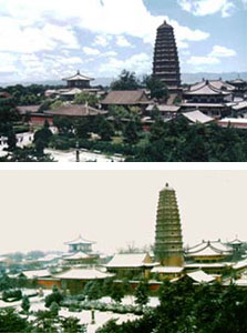 新聞背景知識:阿育王寺和中國的法門寺 2002年02月20日 20:03 ![]() 不同季節(jié)的法門寺 中新網(wǎng)北京2月20日消息:釋迦牟尼佛在世時(shí),信眾就對佛身體上任何部分都視為圣物。佛涅槃后,周邊八個(gè)小國的國王曾率軍隊(duì)爭奪舍利,后被一個(gè)香姓婆羅門勸解,并主持將舍利分成八份,各自請回供奉。 釋迦牟尼佛涅槃后一百多年,古印度有個(gè)國王叫阿育王的崇信佛教,曾廣泛建立佛塔以供奉佛舍利。人們將這些塔統(tǒng)稱為阿育王塔。 據(jù)隋《歷代三寶記》、唐《破邪論》等佛典記載古印度阿育王曾在很大的地域范圍內(nèi)建筑佛舍利塔。據(jù)傳中國境內(nèi)有十九處,都稱中國江漢左右、關(guān)隴西東有阿育王塔。扶風(fēng)阿育王塔即為其一。法門寺初建于東漢年間,先有佛塔后建佛寺,所以最初便因阿育王塔而名阿育王寺,后唐高祖李淵賜名法門寺。 唐代法門寺寶塔為四級木塔,明代隆慶年間(公元1567—1572年)唐代木塔崩塌。明神宗萬歷七年至三十七年(1579—1609)重建八角十三級磚塔一座,塔高四十七米。一九八一年八月二十四日在邊綿霪雨中明代磚塔塔身自上而下崩塌一半。 一九八六年十月,文物部門決定撥款重修寶塔。一九八七年四月在清理塔基時(shí),發(fā)現(xiàn)唐代地宮并出土佛指舍利和大量唐代稀世珍寶。唐朝幾代帝王都曾予以修葺。懿宗時(shí)又加以擴(kuò)建。地宮全長21.12m,面積為31.84m2。整個(gè)地宮由踏步臺階、平臺、甬道、前室、中室、后室、秘龕七部分組成,以五道石門相隔。這個(gè)地宮曾得到唐王朝歷代皇帝的重視,給予多次修葺。