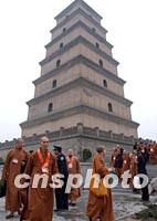 圖:兩岸佛教人士參觀大雁塔 2002年02月22日 13:52 ![]() 在西安參加法門(mén)寺佛指舍利赴臺(tái)灣地區(qū)瞻禮(供奉)活動(dòng)的兩岸佛教人士,二十二日上午來(lái)到西安大雁塔參觀。中新社記者 錢(qián)興強(qiáng) 攝