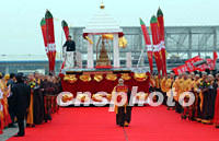 組圖:佛指舍利赴臺(tái)灣地區(qū)瞻禮恭送法會(huì) 2002年02月23日 17:21 ![]() 法門寺佛指舍利赴臺(tái)灣地區(qū)瞻禮(供奉)恭送法會(huì), 二十三日在西安咸陽國際機(jī)場舉行。中新社記者 錢興強(qiáng) 攝 ![]() 二十三日西安咸陽機(jī)場法旗飄飄、云香繚繞,兩岸眾僧恭送法門寺佛指舍利赴臺(tái)灣地區(qū)瞻禮(供奉)。 中新社記者 錢興強(qiáng) 攝