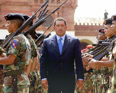 委內(nèi)瑞拉將領(lǐng)稱總統(tǒng)失去權(quán)力 軍隊控制國家(圖) 2002年04月12日 10:40 委內(nèi)瑞拉10名高級軍官11日發(fā)表聲明,要求總統(tǒng)查韋斯下臺.圖為2002年2月4日委內(nèi)瑞拉總統(tǒng)在首都加拉加斯檢閱軍隊。法新圖