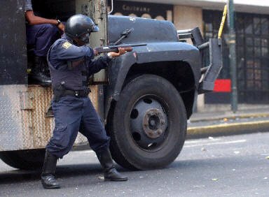 ![]() 委內(nèi)瑞拉當(dāng)?shù)貢r間4月11日晚(北京時間12日上午),國民警衛(wèi)隊的卡伊魯茲將軍宣布,總統(tǒng)查韋斯的政府已經(jīng)“不再履行其職能”,全國局勢已經(jīng)被軍隊控制。此前,委內(nèi)瑞拉發(fā)生數(shù)十萬人罷工,群眾要求查韋斯辭職。他們與警察、國民警衛(wèi)隊以及總統(tǒng)的支持者發(fā)生了激烈沖突,至少已導(dǎo)致12人死亡,96人受傷。圖為騷亂中一名國民警衛(wèi)隊員躲在車后準(zhǔn)備射擊。(春風(fēng))
