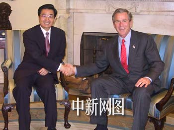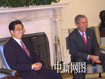 多圖:胡錦濤副主席與美國總統(tǒng)布什舉行會晤 2002年05月02日 08:48 ![]() 美國當(dāng)?shù)貢r間五月一日下午,美國總統(tǒng)布什在白宮會晤中國國家副主席胡錦濤。中新社 徐德金/攝 ![]() 美國當(dāng)?shù)貢r間五月一日下午,中國國家副主席胡錦濤在白宮與美國總統(tǒng)布什舉行會晤。圖為胡錦濤、布什微笑面對攝影記者短暫拍照。中新社 徐德金/攝 ![]() 美國當(dāng)?shù)貢r間五月一日上午,中國國家副主席胡錦濤與美國副總統(tǒng)切尼舉行會談。圖為胡副主席抵達(dá)白宮時向守候的記者揮手致意。中新社 徐德金/攝 中新網(wǎng)華盛頓五月一日電(記者徐德金)美國當(dāng)?shù)貢r間五月一日下午,中國國家副主席胡錦濤與美國總統(tǒng)布什舉行會晤。 會晤在白宮橢圓型辦公室舉行。在開放給媒體攝影記者短暫拍照時,布什、胡錦濤滿面微笑、頻頻握手,布什還風(fēng)趣地對記者說,“再拍一張”。 五月一日上午,胡錦濤與切尼副總統(tǒng)在白宮舉行了會談。胡副主席是應(yīng)切尼副總統(tǒng)的邀請?jiān)L問美國的。 下午,胡錦濤還會晤了美國總統(tǒng)國家安全顧問賴斯。 今天,大批媒體記者守候在白宮,采訪胡錦濤副主席與美國領(lǐng)導(dǎo)人的會晤、會談。 胡錦濤副主席今天在五角大樓還會晤了美國國防部長拉姆斯菲爾德。