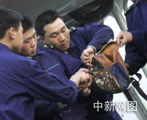 圖:5·7空難罹難小學(xué)生申華的書包被打撈出水 2002年05月11日 22:10 ![]() 北海艦隊(duì)某部救撈船官兵5月11日下午撈上一位遇難小學(xué)生的書包,里面日記本上寫著“大連沙河口區(qū)黑石礁碼頭三年級一班申華”的字樣。申華的最后一篇日記,是寫于五月四日《登長城感想》。申華的父母親都在空難中罹難。(中新社記者 王麗南 攝)
