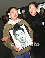 圖:“永別了,親人”--愛子手捧父親的遺像參加追悼會 2002年05月16日 19:40 ![]() 十六日,“五·七”遇難者首批遺體在大連殯儀館火化并舉行追悼會,交通部水運(yùn)規(guī)劃設(shè)計院工程師毛鎧的愛子,手捧父親的遺像悲傷不已。逝者三十八歲,曾參加廣東大亞灣、海南天然氣碼頭、大連三十萬噸碼頭等多項國家重點(diǎn)工程規(guī)劃設(shè)計。作者:王麗南