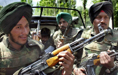 圖:印總理巡視克什米爾 士兵進(jìn)行安全巡視 2002年05月23日 16:33 印度總理瓦杰帕伊5月22日來(lái)到克什米爾邊境地區(qū)進(jìn)行視察,并向守衛(wèi)在那里的士兵發(fā)表演講。圖為印度軍隊(duì)士兵進(jìn)行安全巡視。法新供中新