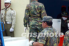 圖:臺(tái)灣澎湖28日高溫士兵加運(yùn)大量冰塊降溫 2002年05月29日 11:14 ![]() 五月二十八日臺(tái)灣澎湖地區(qū)氣溫高升,設(shè)在馬公空軍基地的失事華航客機(jī)遇難乘客尸體辨認(rèn)中心空氣污濁,士兵緊急加運(yùn)大量冰塊降溫。中新社記者 任晨鳴 攝