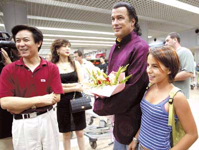 中新網(wǎng)北京8月26日消息:昨晚9點(diǎn)40分,好萊塢動(dòng)作巨星史蒂芬·西格爾終于如愿以償?shù)氐诌_(dá)北京機(jī)場(chǎng)。另外,還有消息透露:騰格爾很有可能擔(dān)任跨國(guó)巨制的史詩(shī)電影《成吉思汗》主題曲的演唱者。