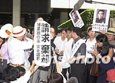 日本東京地方法院二十七日對侵華日軍細菌戰(zhàn)中國受害者索賠案進行判決,首次認定日軍七三一部隊在中國進行細菌戰(zhàn)的犯罪事實,但卻駁回中國受害者向日本政府索賠的訴求。圖為法院工作人員向等候在法院外的媒體宣布判決結(jié)果。作者:陶光雄