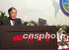 中國(guó)科協(xié)2002年學(xué)術(shù)年會(huì)五日在四川大學(xué)體育館隆重開(kāi)幕。中國(guó)科協(xié)主席周光召致開(kāi)幕詞。作者:陳雯