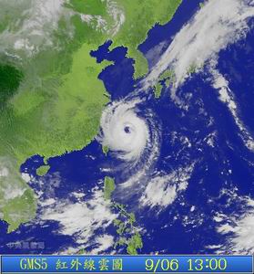 中新社香港九月六日電臺北消息:據(jù)臺灣氣象局今天上午最新臺風消息,臺風森拉克的暴風圈已進入臺灣北部及東北部近海,正逐漸向臺灣陸地逼近,已有兩人失蹤。