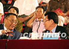 國家政協(xié)主席李瑞環(huán)八日晚在中國第三屆特殊奧林匹克運動會開幕式上,與全國殘聯主席鄧樸方親切交談。作者:宋吉河