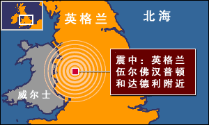 在英格蘭中部、倫敦等地的建筑搖晃了半分鐘,震中位于英格蘭西部伍爾佛漢普頓和達(dá)德利附近。