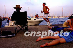 入秋以來(lái),美國(guó)芝加哥天氣轉(zhuǎn)涼。周末,人們?cè)诿苄舷硎荜?yáng)光。作者:王瑤