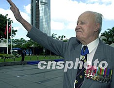 10月14日,中國農(nóng)歷九月初九重陽節(jié)是登高掃墓的日子,香港政府按慣例清晨在中環(huán)大會堂紀念花園舉行儀式,悼念在一九四一至一九四五年期間為保衛(wèi)香港抗擊日本侵略軍捐軀的人士。當年駐港英軍、現(xiàn)年八十四歲的Jack Edwards,到場深情悼念陣亡的戰(zhàn)友。中新社圖 任晨鳴 攝