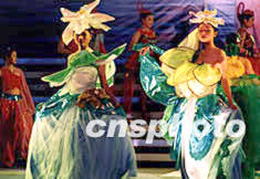 六日晚在福州舉行的“奮飛吧八閩健兒”文藝晚會上,身著“茉莉花”造型時裝的模特,展現(xiàn)“芬芳滿園”。作者:劉可耕